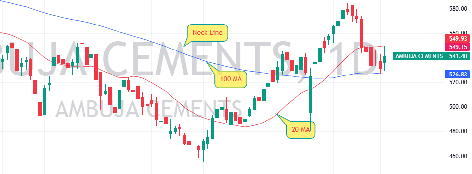 Ambuja Cement share price is currently taking support at the 100 MA, showing that investors are defending this level, preventing further downside.
