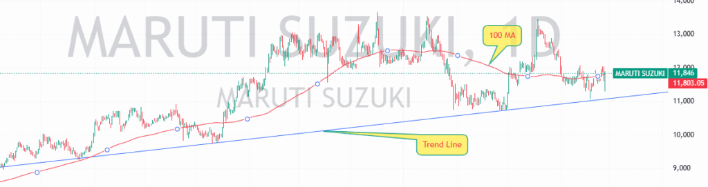 Maruti Suzuki Chart Pattern Analysis: Trend Line Support & 100 MA Crossover with Fundamental Insights